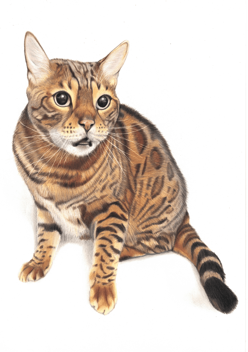 Jag skapar detaljrika porträtt av hundar, katter och andra husdjur med professionella färgpennor. Varje porträtt ritas för hand och tar 15–35 timmar.Resultatet fångar din älsklings personlighet ner till minsta detalj.